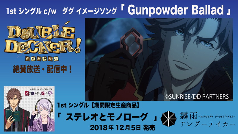 放送中のTVアニメ『DOUBLE DECKER! ダグ&キリル』より、作中のキャラクター・ダグをイメージした霧雨アンダーテイカーの楽曲『Gunpowder Ballad』の試聴動画が公開された。