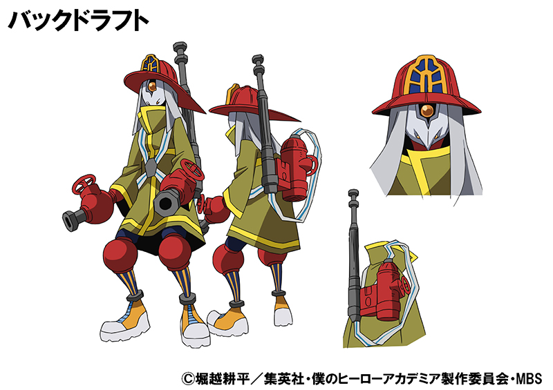 消火活動を得意とするプロヒーロー。両手に放水ポンプのようなものを備えている。