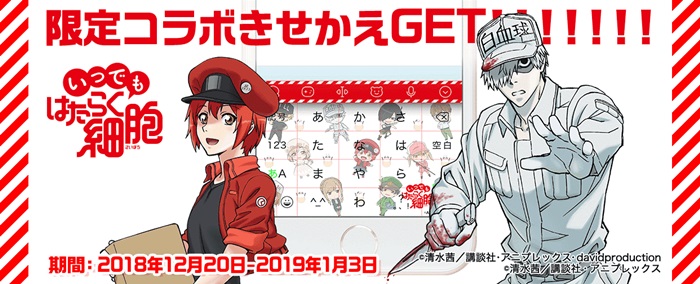 現在事前登録実施中のテレビアニメ『はたらく細胞』初のゲームアプリ『いつでも はたらく細胞』と日本語入力&きせかえ顔文字キーボードアプリ“Simeji”が本日12月20日から2019年1月3日の間、期間限定でコラボレーション。