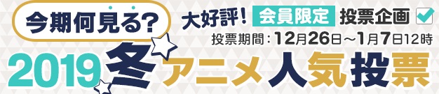 dアニメストアにて、2019年の冬アニメで気になっている作品の人気投票を、2018年12月26日(水)~2019年1月7日(月)の期間実施。今回、合計投票数、57,748票もの応募があった結果が明らかになった。