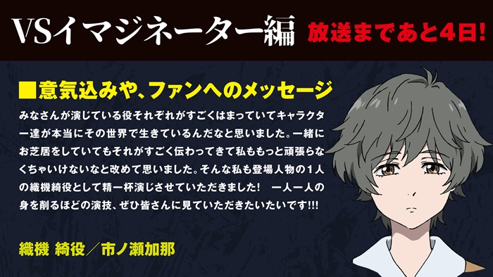 本日1月14日(月)には谷口正樹役・八代 拓、 織機 綺役・市ノ瀬加那のコメントが公開された。