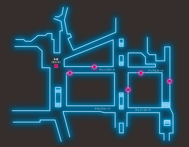池袋駅構内5地点で潜伏捜査中の5名を探して密かに接触(QRをスキャン)し、情報(スタンプ)を集めてコンプリート