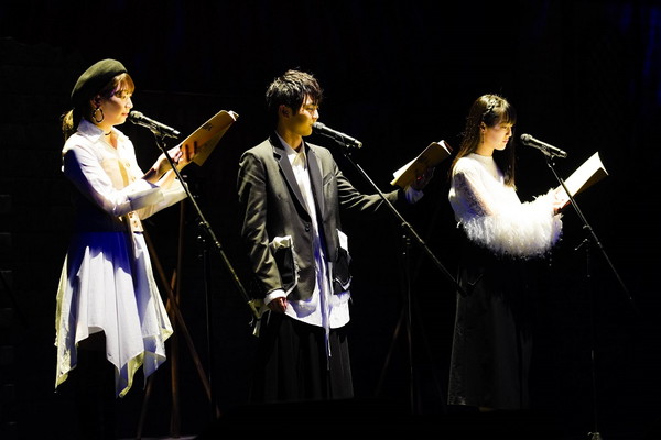 朗読劇は、アルミン役・井上麻里奈さんのナレーションに始まり、Season 3 Part.1最終話とPart.2の1話(第50話)の間であるウォール・マリア奪還作戦前夜の出来事をキャラクターごとの視点で掘り下げた内容。朗読劇が始まると和やかなトークコーナーから会場の空気が一変し、一気に緊張感が増した。総尺約50分にもわたり生朗読での臨場感あふれる掛け合いが繰り広げられ、会場は大きな熱気に包まれていった。