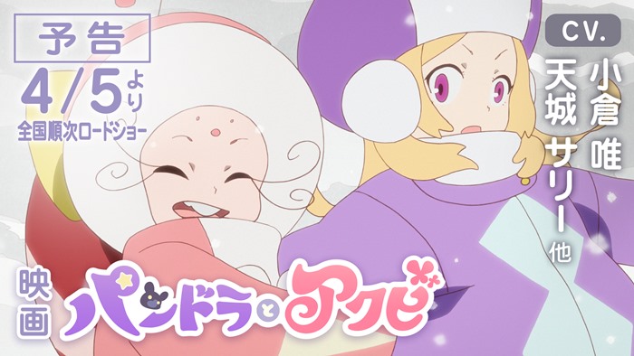 主人公のひとりパンドラ役は2017年からゲームの声も担当している小倉 唯。好奇心旺盛でおっちょこちょいな性格なパンドラを魅力たっぷりに演じている。アクビ役は、秋元康プロデュースによるデジタル声優アイドルグループ22/7(ナナブンノニジュウニ)で活動する天城サリー、自由気ままな性格と素直な物言いのキャラをキュートに演じている。