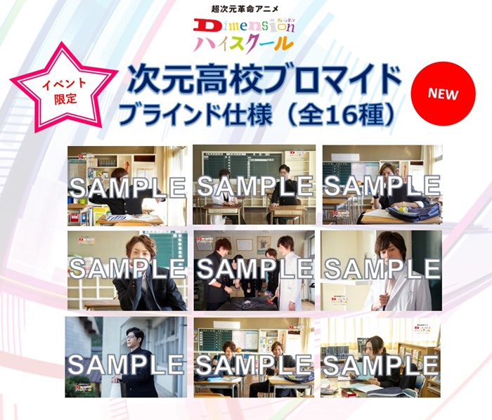 また、“超次元チケットホルダー”などイベント限定のグッズ販売も決定。“キャラクターブロマイド”には、本編でサプライズ“実写”出演した大出紫郎(蒼井翔太)も新規で登場。