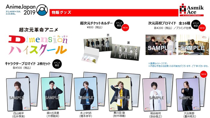 国内最大規模のアニメの祭典“AnimeJapan 2019”のアスミック・エースブース内に、超次元革命アニメ『Dimensionハイスクール』も出展することが決定。学校・教室をテーマにした同ブースでは、Dスクメインキャラクターたちの生態(!)がよく分かるロッカーや習字の展示などを予定しており、作品の世界観を楽しめる。