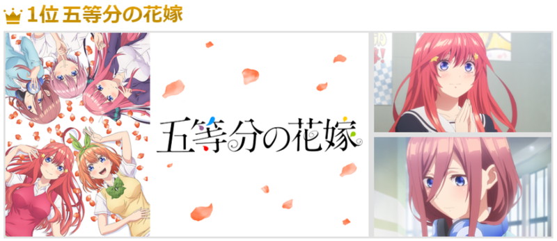 可愛い五つ子たちが登場するアニメになっています。五つ子全員が、勉強嫌いで、落第寸前だったことには驚きました。五つ子なのに、性格は違ったり、好きなものが全然違っていて、夏祭りの回ではくすっと笑えました。時にはぶつかり合いもありますが、それでも姉妹同士や、風太郎とともに乗り越えていき、解決していくのには見ごたえがあります。可愛いだけじゃない、毎回どういうふうにこれは解決していくのだろうなど、展開にワクワクできるのでおすすめしたいです。