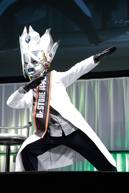 ステージではこのほか、TOHO animation公式チャンネルにて公開されている科学バラエティ番組『Dr.STONE 科学部』についても紹介。ここで、原作のBoichi先生がデザインしたイラストを元に誕生した番組マスコットの“未完成型ロボット”こと『メカ千空』がステージにサプライズ登場!番組内コーナー“メカ千空が行く!”OP映像もステージで初解禁となりました。そこにはストーンワールド(砕石場)で、特撮ヒーロー風に、跳んで、駆ける、メカ千空の勇姿が…!