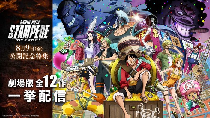 8月9日に公開される劇場版『ONE PIECE STAMPEDE』に合わせ、U-NEXTにて7月1日(月)より過去の劇場版12作品が見放題で配信スタートする。