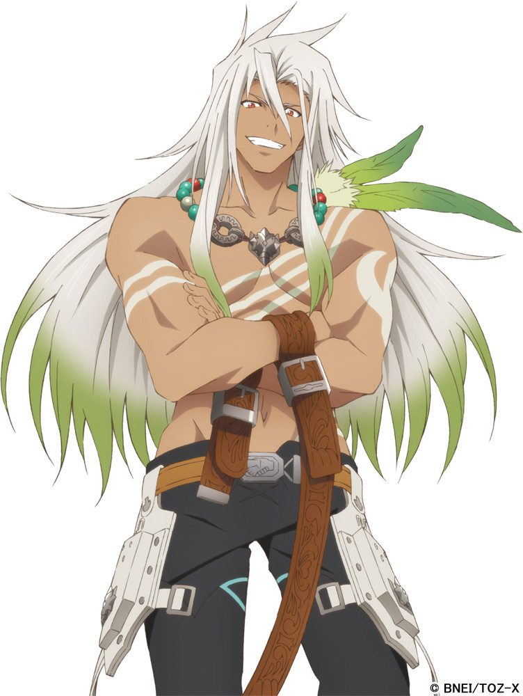 アウトローな雰囲気をまとい、風の天響術を操る天族。かつて、人間の傭兵団と共ともに過ごした経験から戦闘に長けており、2本のペンデュラムを鞭のように駆使して敵を翻弄する。喜怒哀楽はほとんど表に出さず、他人とのコミュニケーションも取りたがらない孤独主義者。