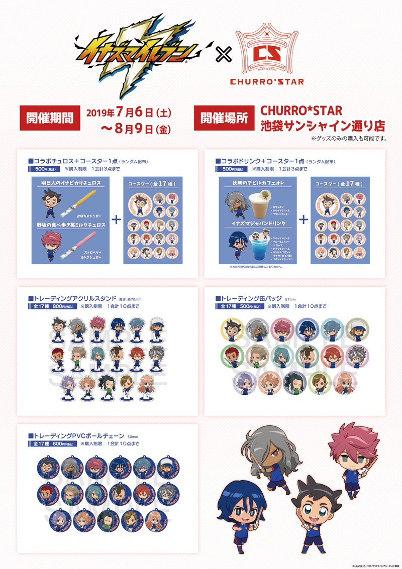 ここでしか見られない、チュロスを手に持ったイナズマイレブンのキャラクター達が17人も大集合! 多数の商品が展開されるのでお見逃しなく。