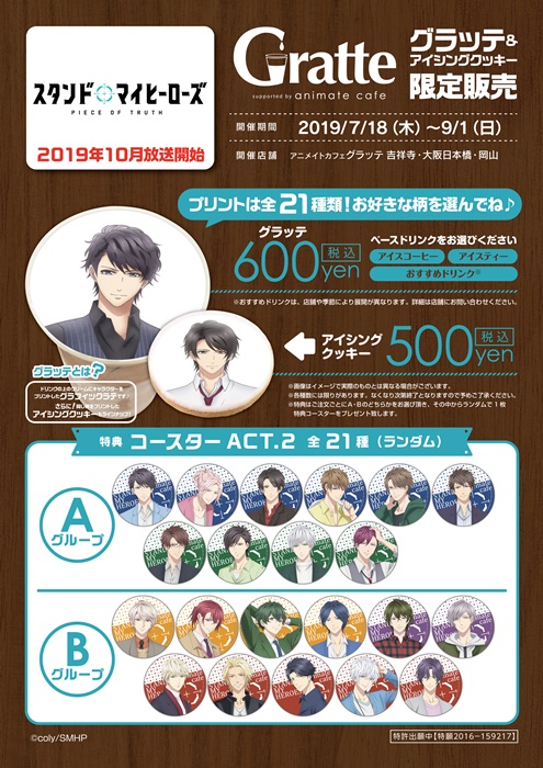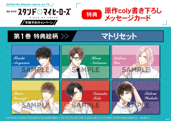 10月よりTOKYO MX、BS11にて放送開始となるTVアニメ『スタンドマイヒーローズ』より、アニメイト早期予約特典“原作coly書き下ろしメッセージカードセット”のマトリビジュアルが解禁!また、『グラッテ』コラボ&『カラオケの鉄人』とのコラボが決定した。