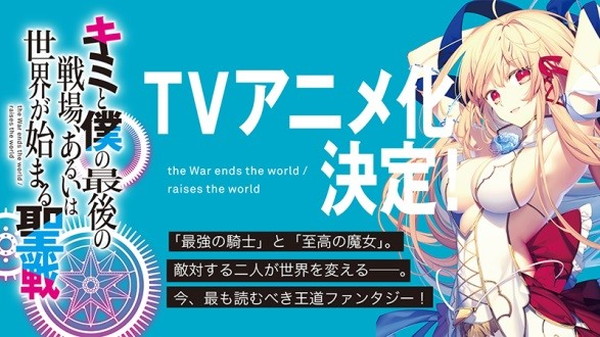 10月20日(日)に開催された「ファンタジア文庫大感謝祭」にて、『キミと僕の最後の戦場、あるいは世界が始まる聖戦』のTVアニメ化が発表された。