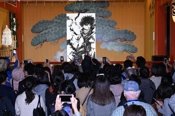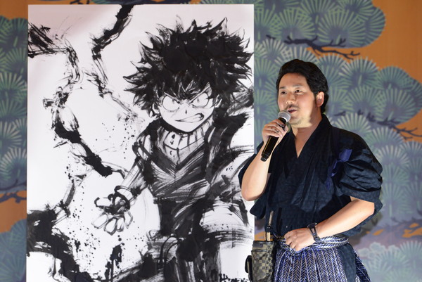 『僕のヒーローアカデミア』第4期の放送スタートを記念して、18日に神田明神にて、日本や海外などでも高い評価を得ている墨絵師「御歌頭」(オカズ)による水墨画ライブペインティングが開催された。