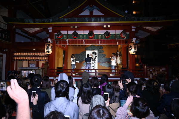 その後、 永井プロデューサーが「今回、 今までなかなか表に出てこなかった1年A組のキャラクターも活躍しています。みなさんの好きなキャラクターも活躍するので、そのあたりも期待していただきたいです。観て絶対に後悔しない、いい出来になっています。ぜひテレビでご覧ください」と改めて第4期の見どころを語り、 ライブペインティングは終了。 最後に完成した水墨画を神田明神に納める奉納の儀式が行われ、イベントは締めくくられた。