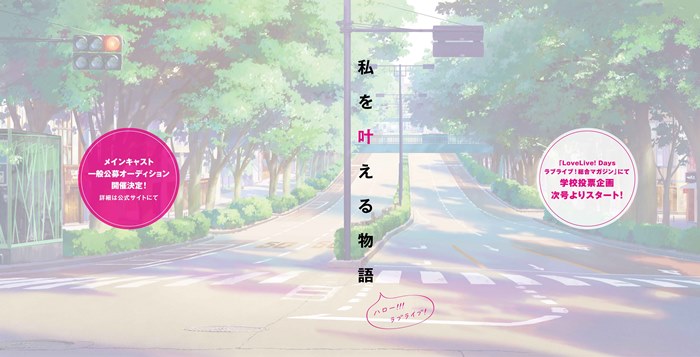 新シリーズプロジェクトでは、TVアニメーション制作と合わせてメインキャスト一般公募オーディションの開催や“LoveLive!Daysラブライブ!総合マガジン”にて新シリーズプロジェクトに関する読者参加型の学校投票企画を行う。