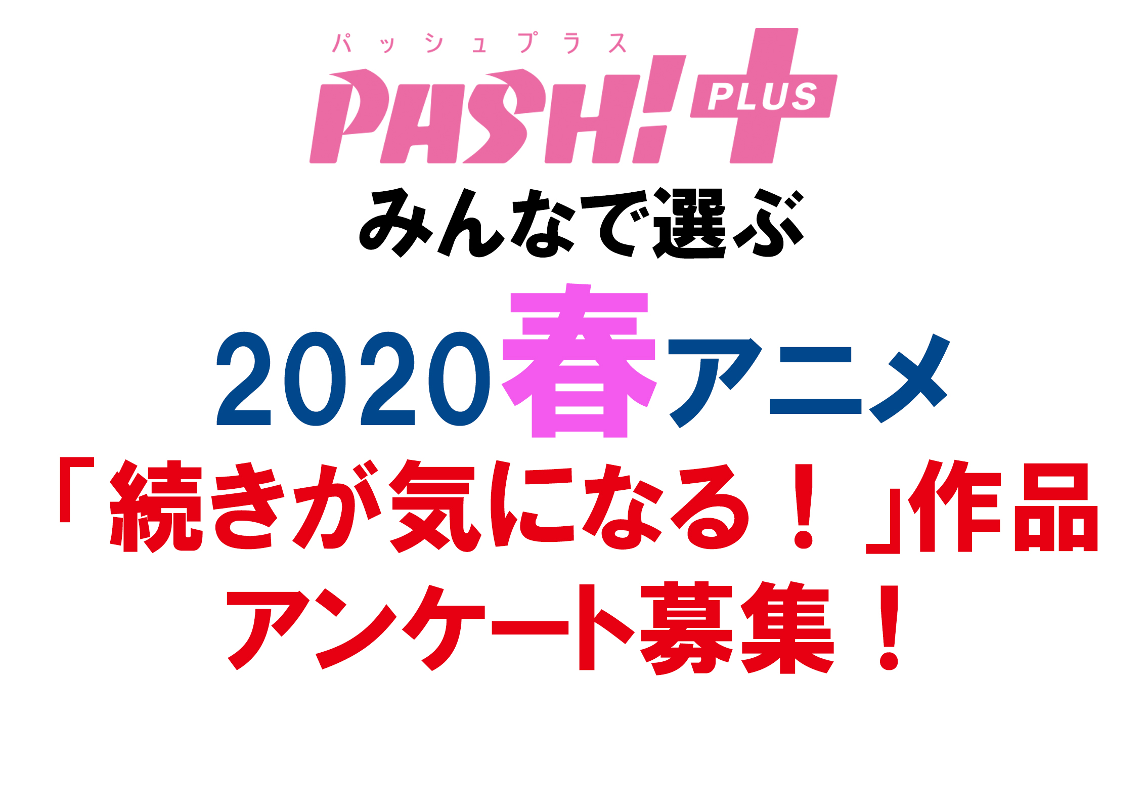 スタートしてから、すでに1か月が経った2020春アニメ。そこで、4月アニメの中から、みなさんが「続きが気になる!」と毎週ワクワクしている作品を教えてください! 作品を選ぶだけでもOKなので、お気軽にご参加ください♪ 締め切りは4月29日(水)17:00です!