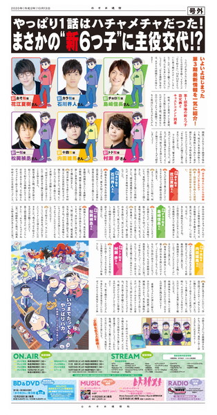 『おそ松さん』第3期の1話がさっそく話題!花江夏樹、石川界人、内田雄馬ら“新6つ子”キャストのコメント到着
