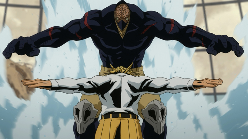 驚異的なパワーと「ショック吸収」の”個性”を持つ脳無の前に、オールマイトは苦戦。