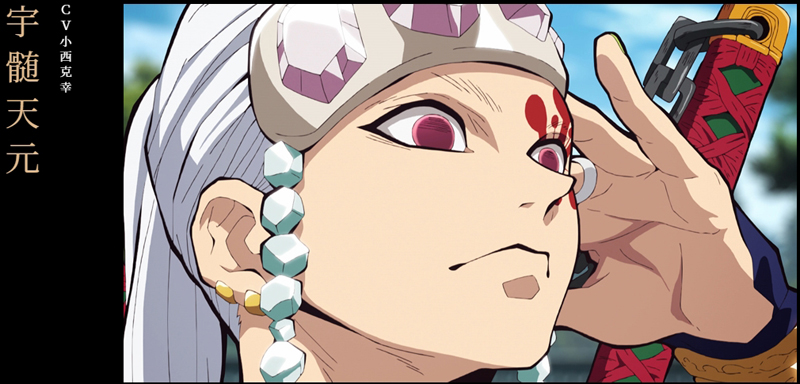 音の呼吸を使う柱で、派手な装いの男性。口癖も「派手」ですが、炭治郎の発言に冷静な指摘をしたりと意外に思慮も深いタイプです。