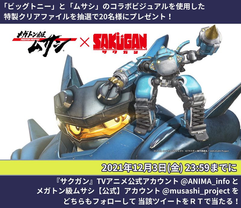 アニメ『メガトン級ムサシ』と『サクガン』がスペシャルコラボ! 特製クリアファイルが当たるキャンペーン実施