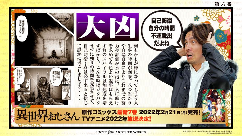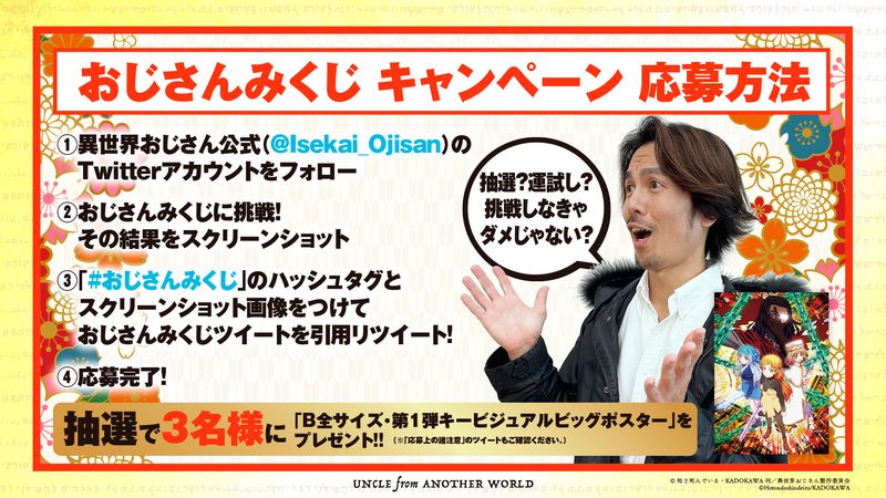 2022年に放送開始となるTVアニメ『異世界おじさん』。公式Twitterにて、“おじさんみくじ”が公開されます。