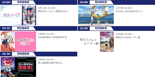 ※“地上波同時”&“見放題最速”は“地上波同時・最速”と記載。