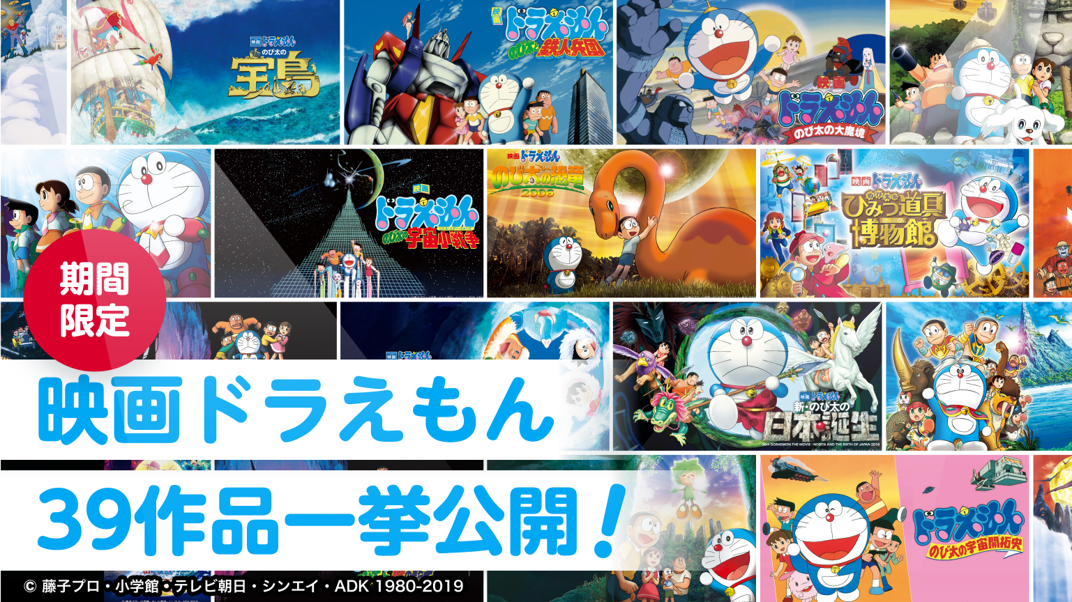 株式会社藤子・F・不二雄プロは、2022年1月11日10:00~5月末の期間、ドラえもん公式アプリ『ドラえもんチャンネル』にて有料会員向けに『映画ドラえもん』過去39作品を一挙配信いたします。