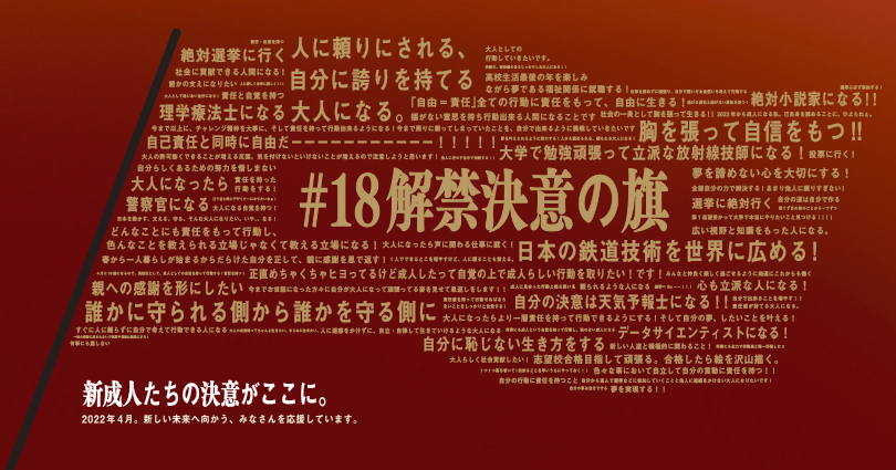 “#18解禁決意の旗キャンペーン”では、成年年齢引下げにあたり、2022年4月に新成人となる18歳、19歳の自身の決意をTwitter上で募集しました。