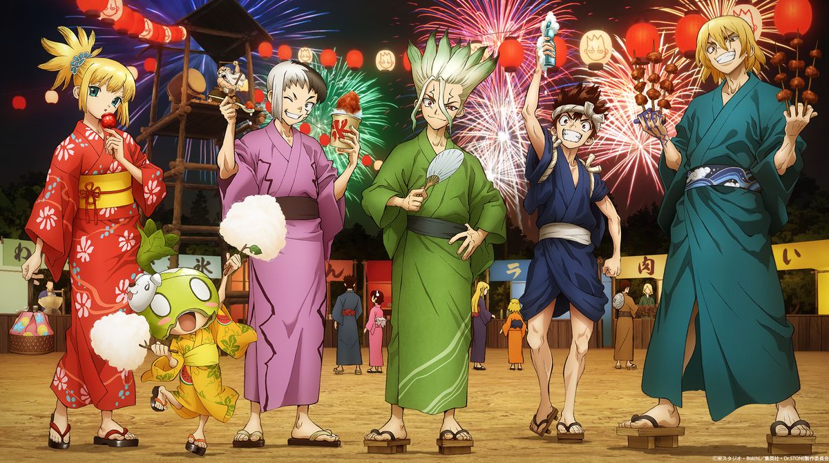 この夏のテレビスペシャル放送・国立科学博物館コラボ等、怒涛の展開をさらに盛り上げる、石神村での夏祭りの様子が描かれた描き下ろしビジュアルも到着。