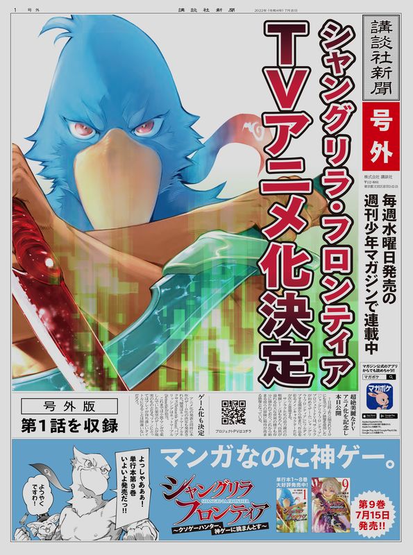 アニメ&ゲーム化決定の超話題作『シャングリラ・フロンティア』ファン必見“アニメ化記念号外”の入手方法は?