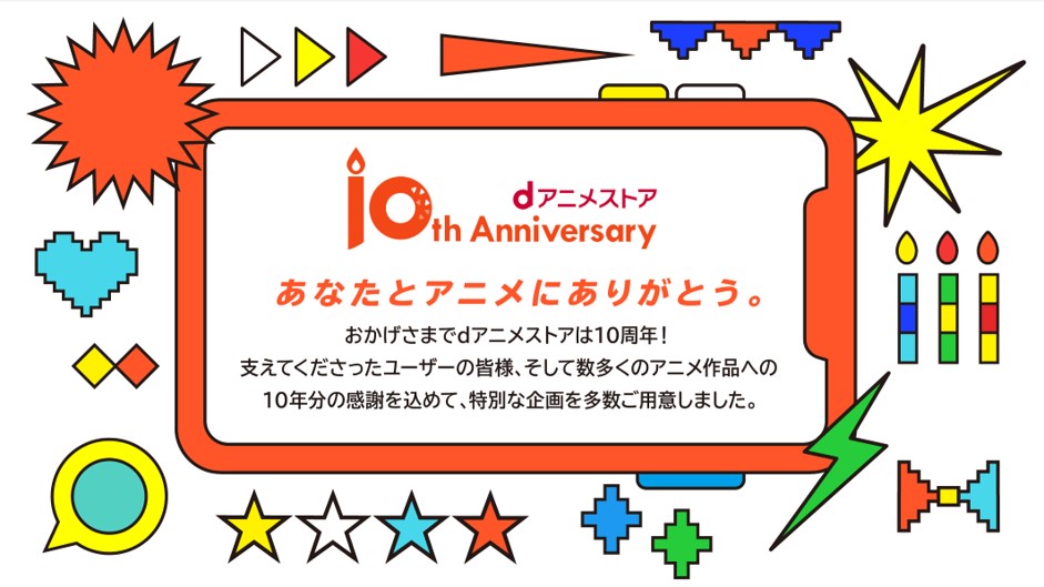 なお、“dアニメストア”10周年記念特設サイトと“dアニメストア”公式Twitterでは、10周年記念プロジェクトに関する情報を随時配信いたします。