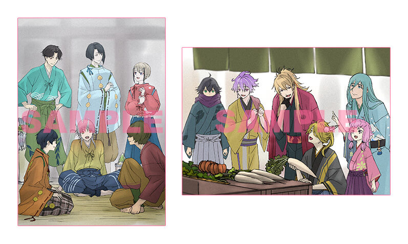 1週目特典での加州清光と大和守安定の凛々しい2ショットや刀剣男士たちが本丸でほがらかに過ごす姿をはじめ、2週目、3週目の特典では出陣先で過ごす刀剣男士たちの姿が描かれており、本作の観賞後に