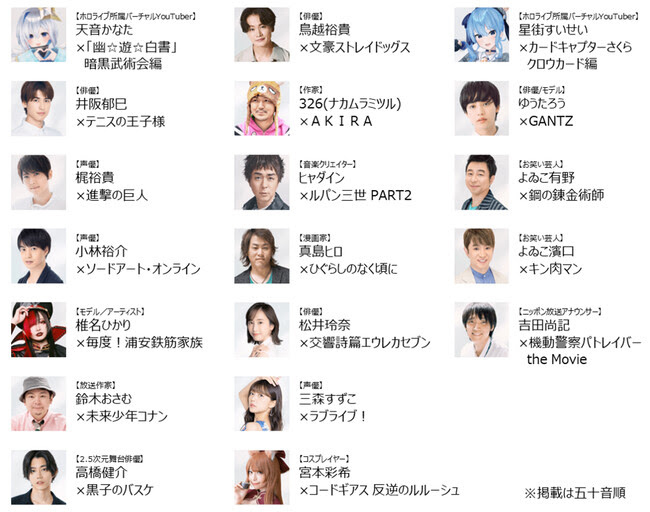 この他にも、松井玲奈さんは『交響詩篇エウレカセブン』、漫画家の真島ヒロさんは『ひぐらしのなく頃に』、ヒャダインさんは『ルパン三世 PART2』、天音かなたさんは『幽遊白書』暗黒武術大会編、星街すいせいさんは『カードキャプターさくら』クロウカード編を挙げています。