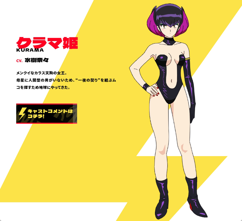 メンクイなカラス天狗の女王。母星に人間型の男がいないため、“一夜の契り”を結ぶムコを探すため地球にやってきた。