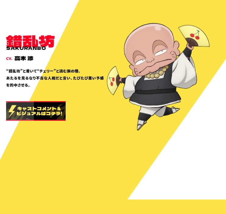 サクラの婚約者。錯乱坊にやっと交際を認められた。優しいが少しドジで間抜けな一面も。