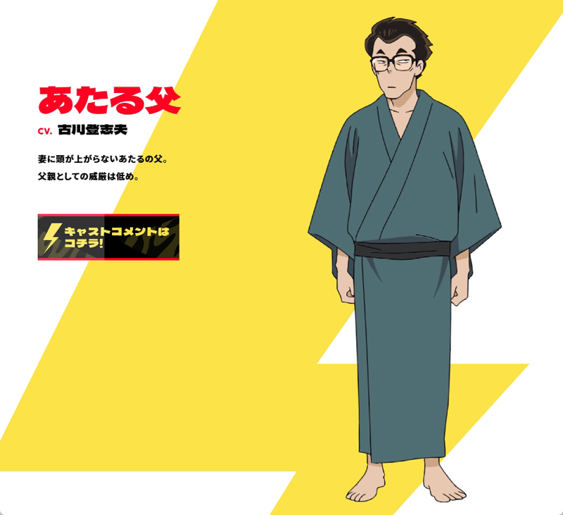 妻に頭が上がらないあたるの父。父親としての威厳は低め。