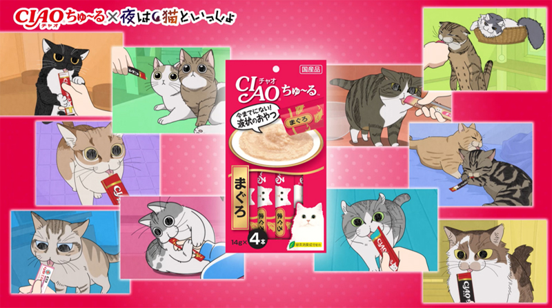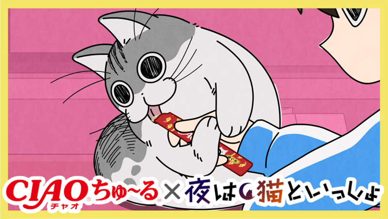 アニメ『夜は猫といっしょ』と『CIAOちゅ~る』とのコラボが決定しました。