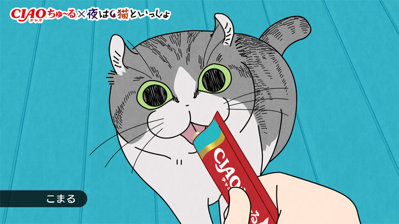 ちゅ~るを食べるキュルガや“まる”などの人気猫ちゃんたちがカワイイ! アニメ『夜は猫といっしょ』と『CIAOちゅ~る』がコラボ