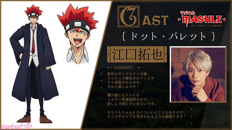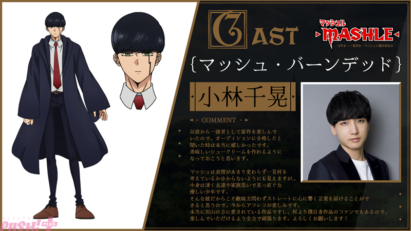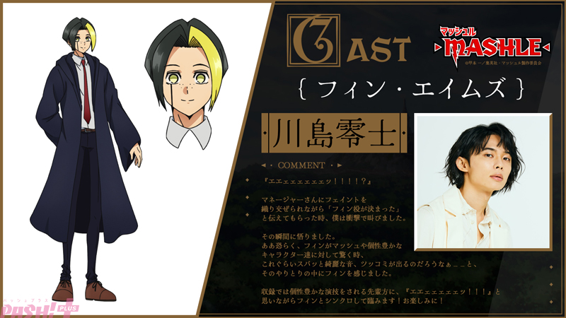 すでに解禁済みの主人公マッシュ・バーンデッド役小林千晃さんに加え、フィン・エイムズ役に川島零士さん、ランス・クラウン役に石川界人さん、ドット・バレット役に江口拓也さん、レモン・アーヴィン役に上田麗奈さんと、今勢いに乗っている豪華キャストが集結。