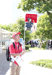 会場内に配備されたWi-Fiサポーターが持つフラッグもコラボレーション!