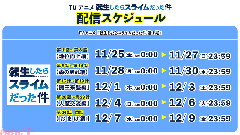 【アニメ『転生したらスライムだった件』(1期全25話)配信スケジュール】