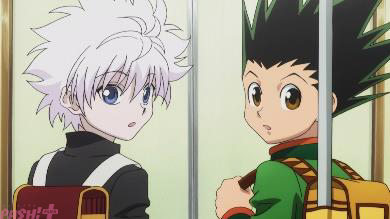 試験会場にたどり着いた3人は、試験のベテランだと語るトンパや、不気味な雰囲気をだすヒソカ、おしゃべりな忍者のハンゾー、そしてスケボーを手にした少年キルアと出会う。