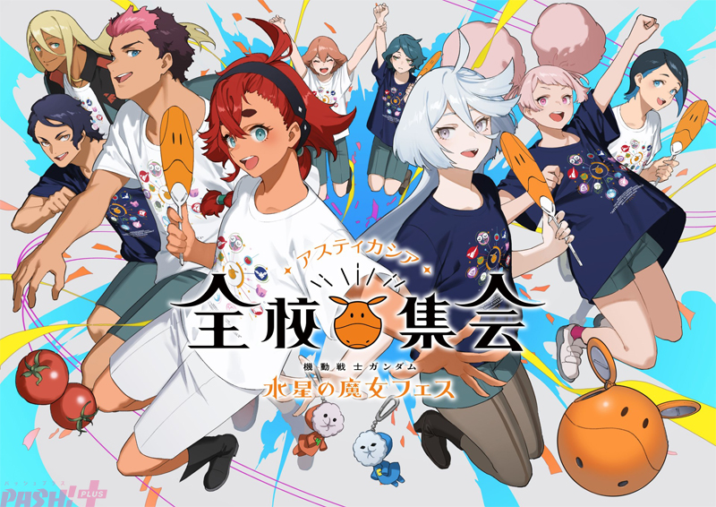 そして、8月6日に幕張メッセ国際展示場にて開催される全席指定の有料イベント“『機動戦士ガンダム 水星の魔女』フェス ~アスティカシア全校集会~”のイベントビジュアルが初公開。キャラクターデザイン原案・モグモさんによる描き下ろしです。