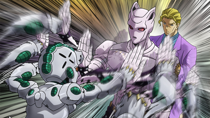ついに目の前に現れた殺人鬼に強い怒りを感じた康一はACT3で吉良に対抗するが、まったく歯が立たない。