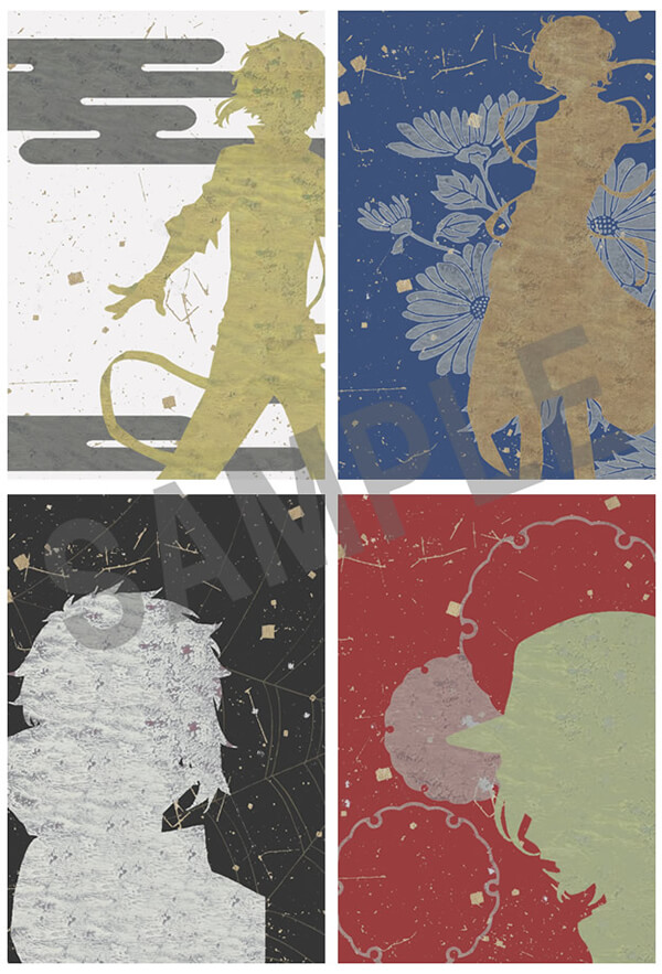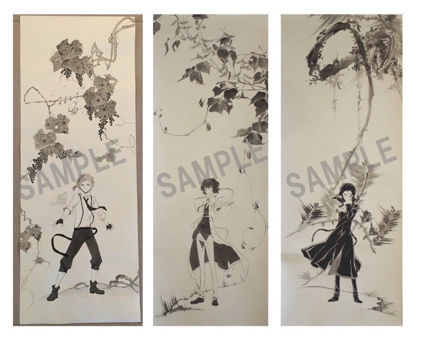 「文豪ストレイドッグス」×「FITS」の完全限定生産コラボフレグランス用に描き下ろしをしたイラストによるスタンディ6台を一挙に展示!
