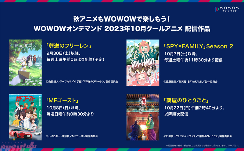 『葬送のフリーレン』『SPY×FAMILY』Season 2など話題の秋アニメが盛りだくさん! 10月クールのWOWOWオンデマンド配信アニメが公開