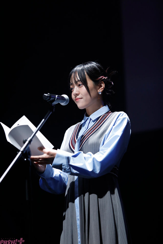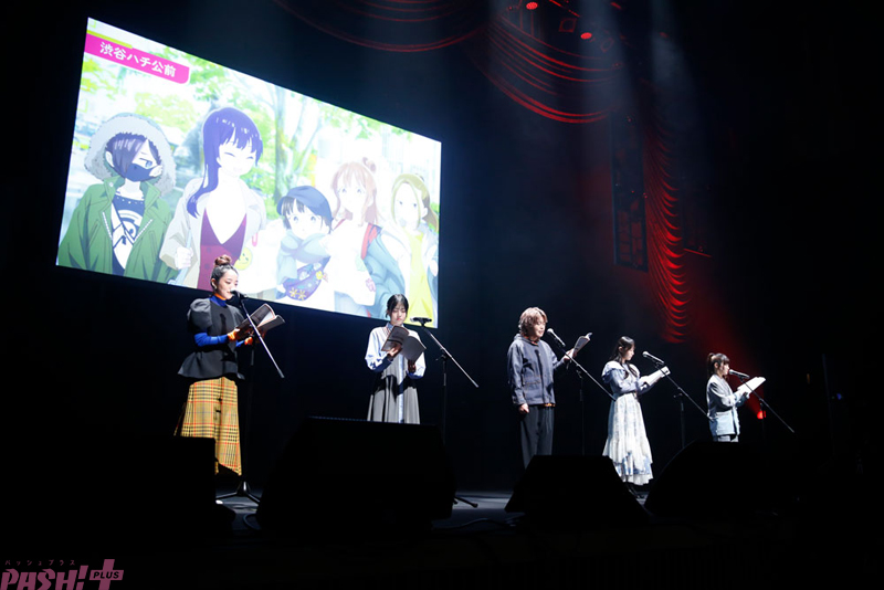 さらに、次世代アーティスト・こはならむが第1期エンディングテーマ「数センチメンタル」と第2期エンディングテーマ「恋してる自分すら愛せるんだ」を生歌唱。「数センチメンタル」では市川の自転車を思い起こされるベルの音が印象的でしたが、「恋してる自分すら愛せるんだ」はBメロに入っている学校のチャイムがポイントとのこと。「山田さんと市川くんのことを思い浮かべながら聴いてください」と2曲続けて披露。柔らかくも山田と市川への愛しさが伝わってくる歌声と後ろに流れるアニメ映像も相まって、感激し涙を流す観客も。本作の世界観で会場がいっぱいになる中、そのまま後半の朗読劇へと進みます。