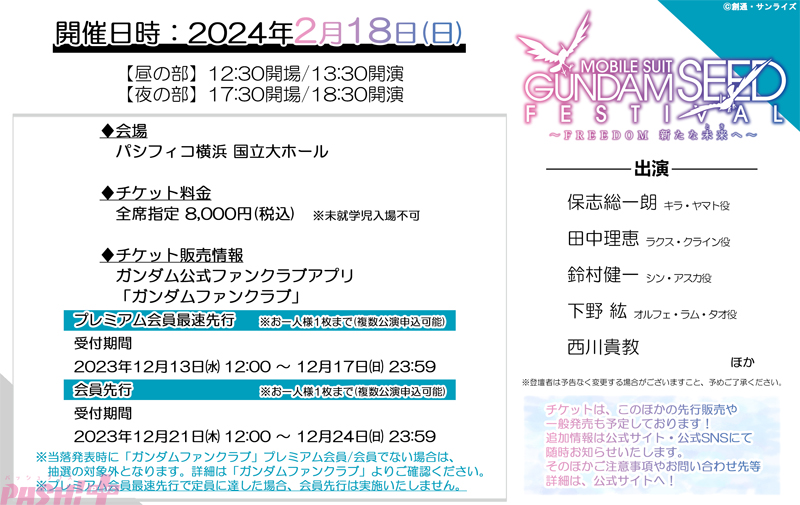 その他、「機動戦士ガンダム SEED FESTIVAL ~FREEDOM 新たな未来(とき)へ~」イベントチケット&追加登壇者も決定しました。