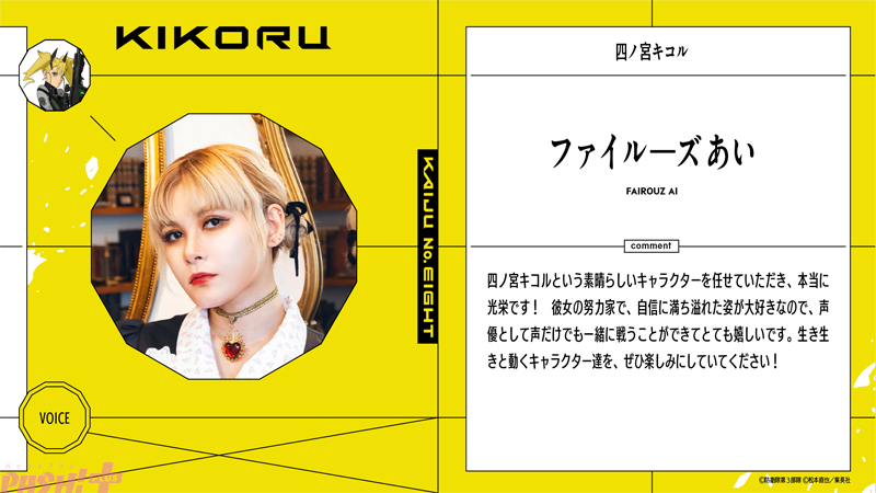 四ノ宮キコルという素晴らしいキャラクターを任せていただき、本当に光栄です! 彼女の努力家で、自信に満ち溢れた姿が大好きなので、声優として声だけでも一緒に戦うことができてとても嬉しいです。